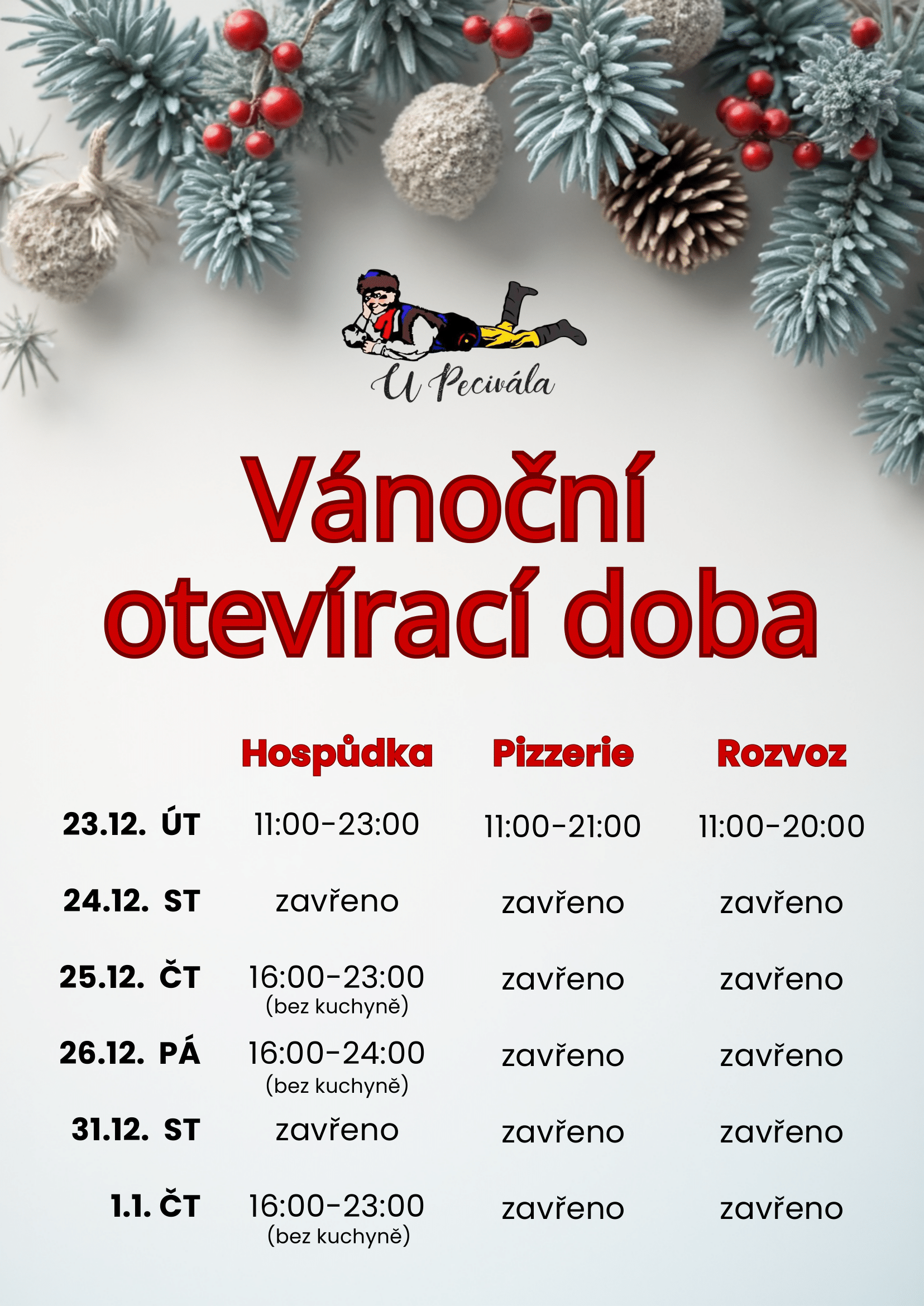 ROZVOZ: rozvážíme pizzu a polední menu. Menu objednávky přijímáme od 9:00 na tel. čísle 725 10 11 12. Rozvoz poledních meníček je v době 11:00-14:00, rozvoz pizz 11:00-20:00